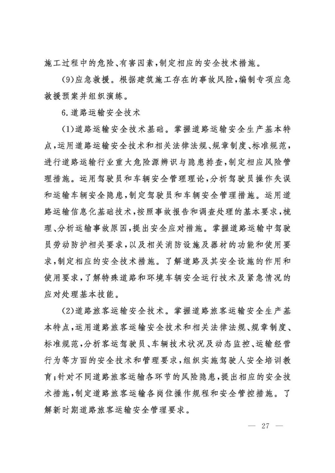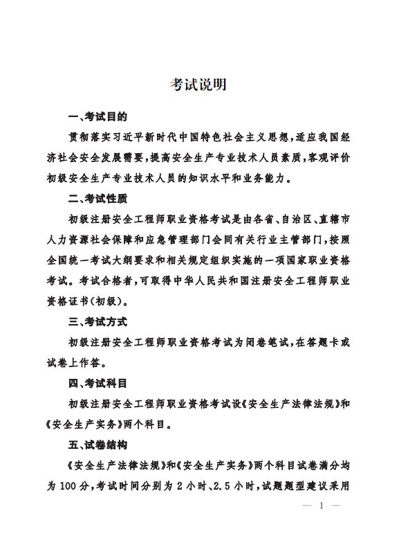 為做好中級(jí)、初級(jí)注冊(cè)安全工程師職業(yè)資格考試工作,按照《注冊(cè)安全工程師職業(yè)資格制度規(guī)定》《注冊(cè)安全工程師職業(yè)資格考試實(shí)施辦法》(應(yīng)急〔2019〕8號(hào))有關(guān)要求,應(yīng)急管理部組織編制了《中級(jí)注冊(cè)安全工程師職業(yè)資格考試大綱》《初級(jí)注冊(cè)安全工程師職業(yè)資格考試大綱》,經(jīng)商住房和城鄉(xiāng)建設(shè)部、交通運(yùn)輸部同意,人力資源社會(huì)保障部審定,現(xiàn)予以印發(fā)施行。