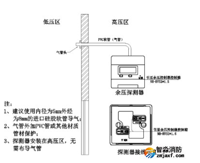 2.系統應根據建筑物內機械加壓送風系統設置的具體情況,采用分段設計的控制方式, 確認余壓控制器和余壓探測器的設置部位、數量。