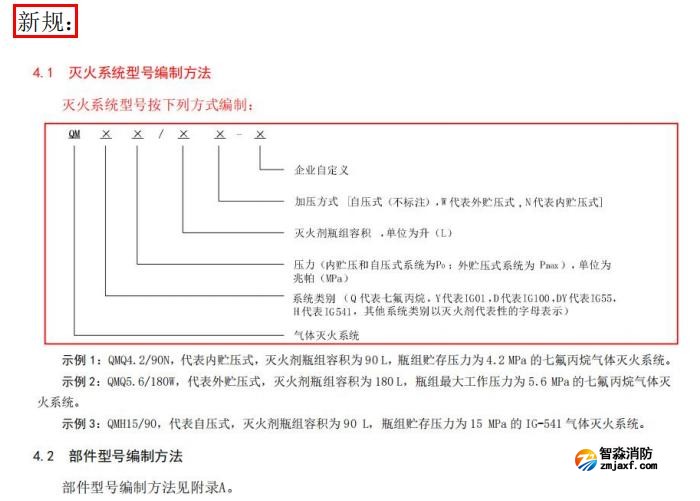 四、更改了“滅火系統型號編制方法”“部件型號編制方法”