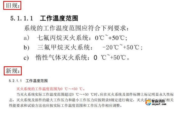 五、更改了滅火系統的工作溫度范圍及工作壓力要求