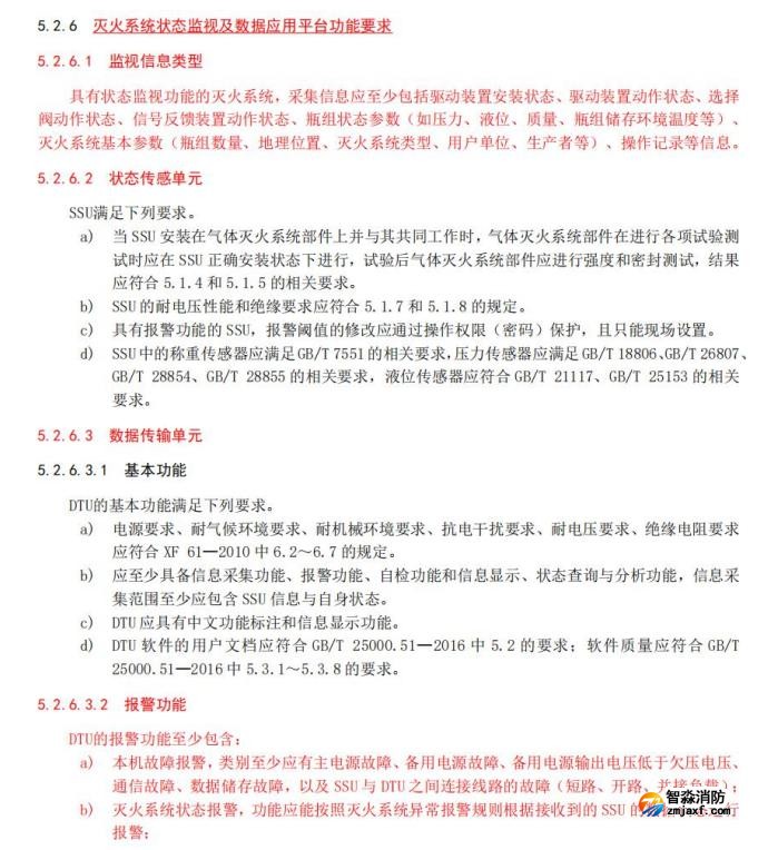 七、增加了滅火系統狀態監視及數據應用平臺功能要求和試驗方法