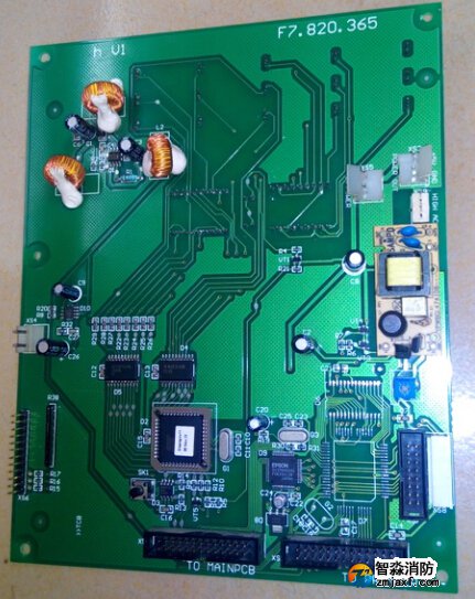 海灣GST500主機液晶顯示器無背光,拆下液晶顯示器的發光管,可以點亮,說明發光部分沒有問 題,問題出在開關板上,開關板上有一升壓模塊(圖中標出紅色的部分),提供液晶顯示器背光所需的 高壓。